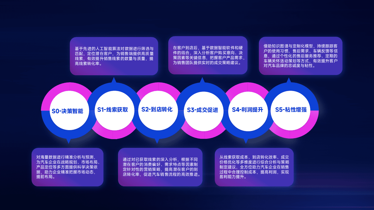 通过拓宽潜在客户来源、、优化线索分配并提高到店转化率,,,,以增强销售效率。。。同时,,,,利用线索数据不断优化分析模型,,有效提升转化率,,,,扩大营销影响力。。